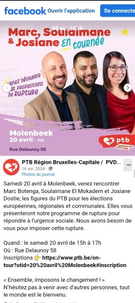 Source: page Facebook du PTB-PVDA