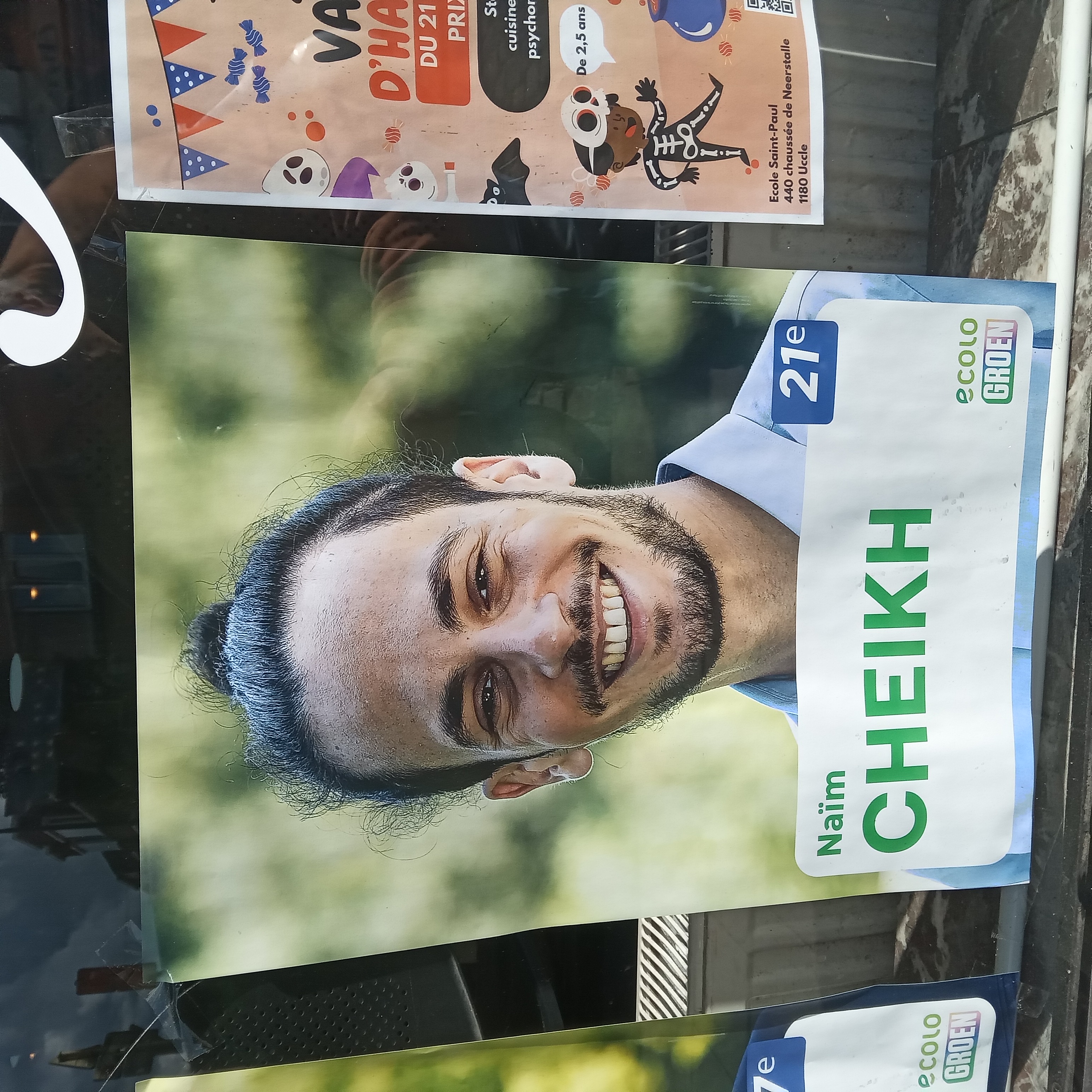 Photo: P.Y. Lambert 11 octobre 2024 chaussée de Neerstalle (vitrine de commerce avec affiches de différentes listes)