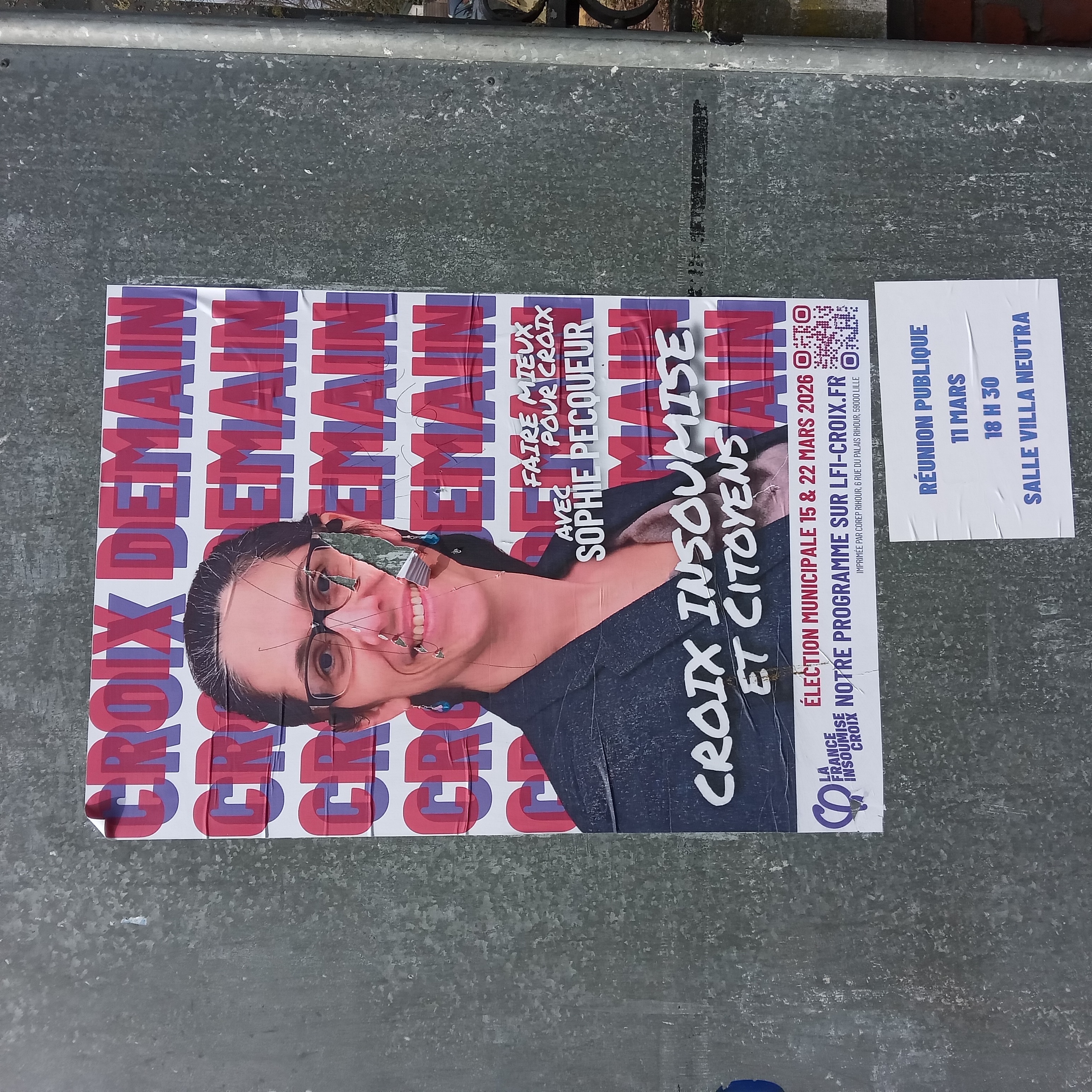 Photo: P.Y. Lambert, panneau officiel, mairie de Croix, 8 mars 2026