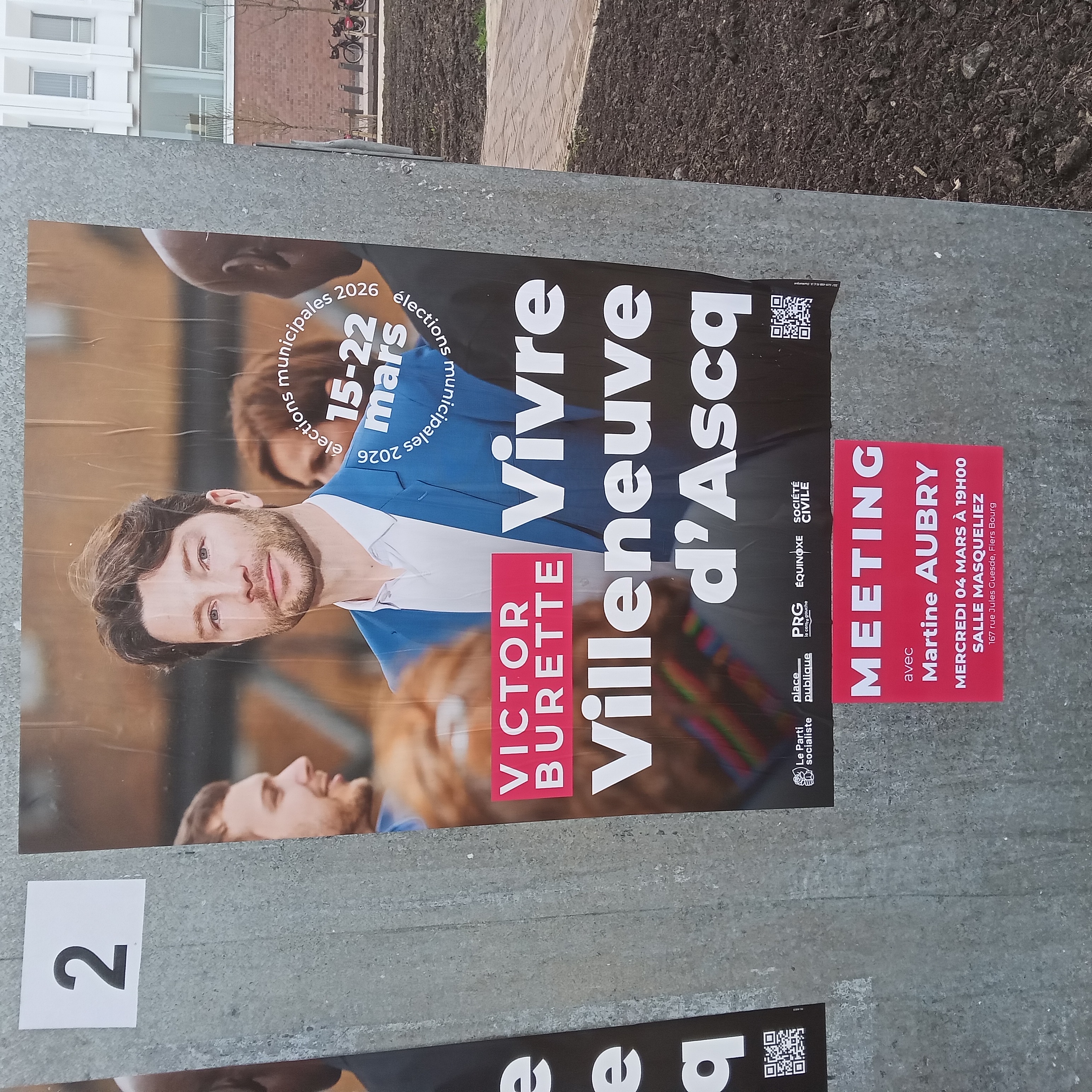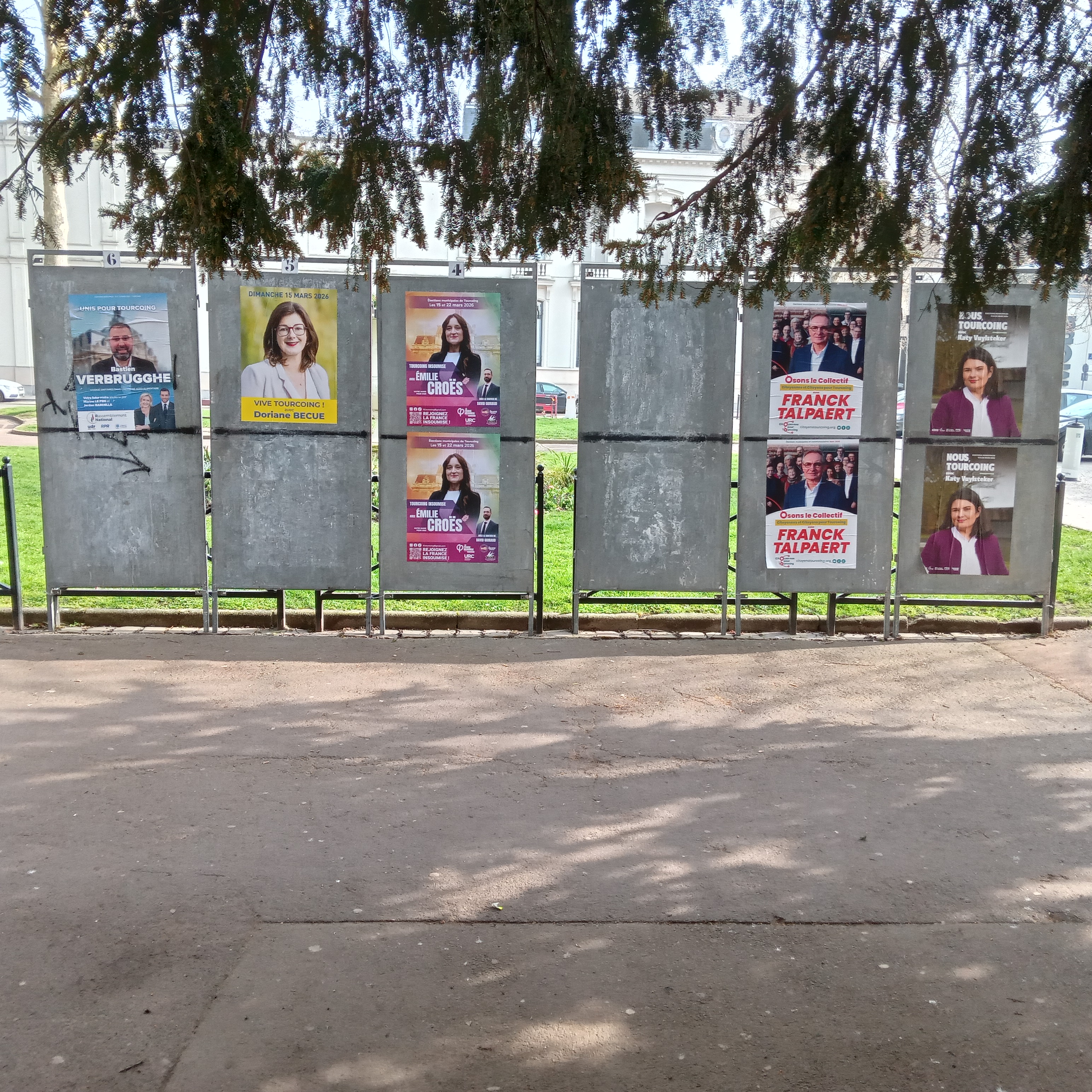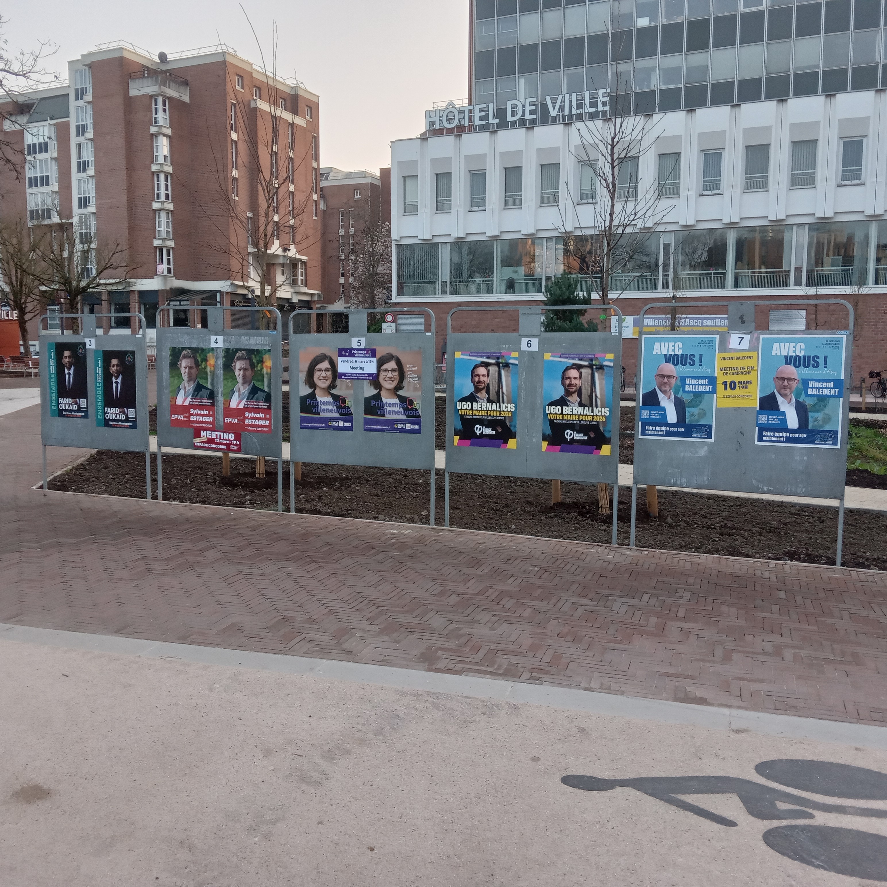 | 13 mars 2026 à 11:41 | Villeneuvedascq2026a.jpg (fichier) | 2,25 Mio | Pylambert | photo: P.Y. Lambert 8 mars 2026 (un des deux panneaux officiels près de la mairie, en raison du nombre de listes) Catégorie:Villeneuve-d'Ascq 2026 | 1 | |