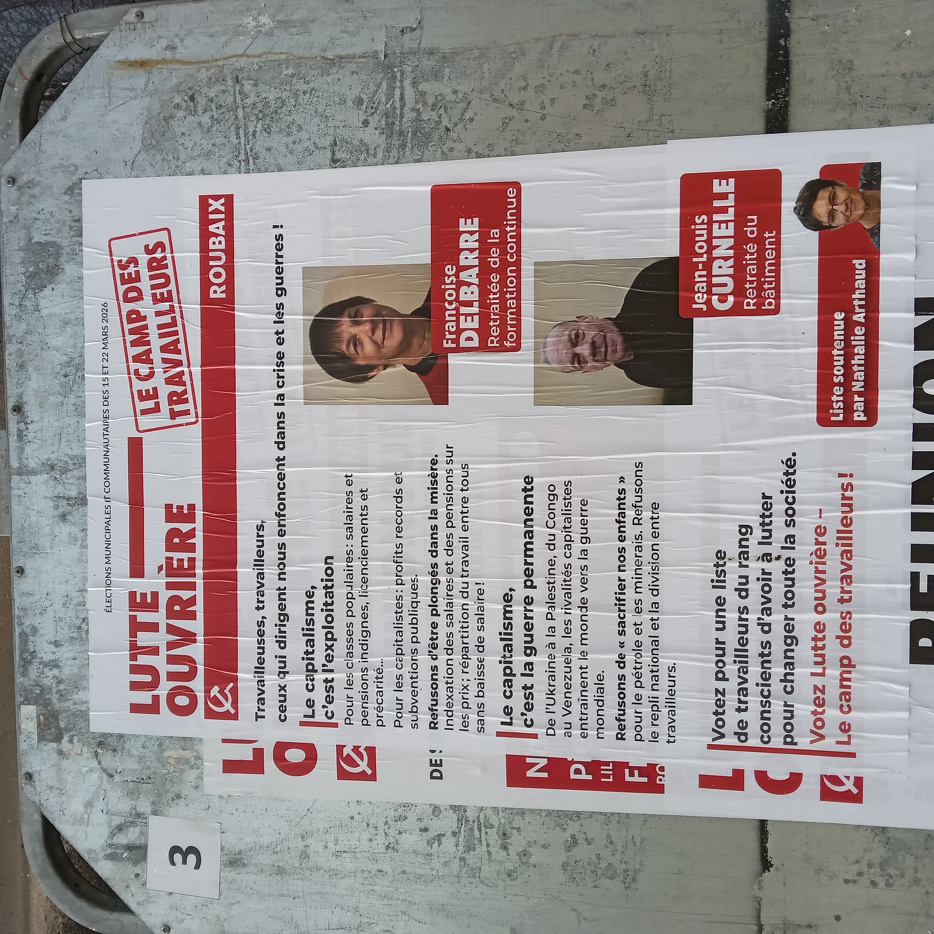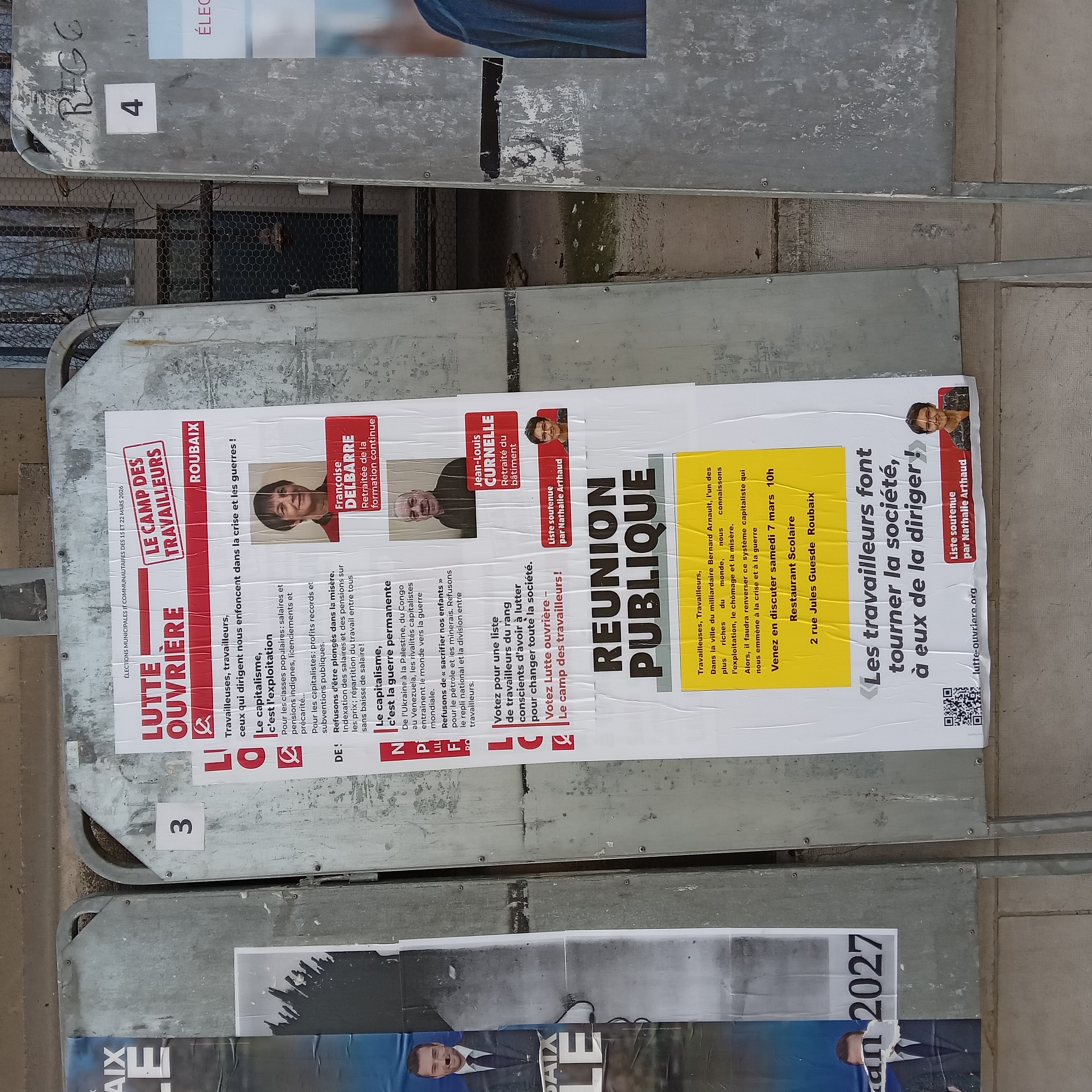 | 13 mars 2026 à 11:09 | Delbarre2026c.jpg (fichier) | 1,66 Mio | Pylambert | photo: P.Y. Lambert 8 mars 2026 (panneau officiel à gauche de la mairie, côté place) Catégorie:Roubaix 2026 | 1 | |