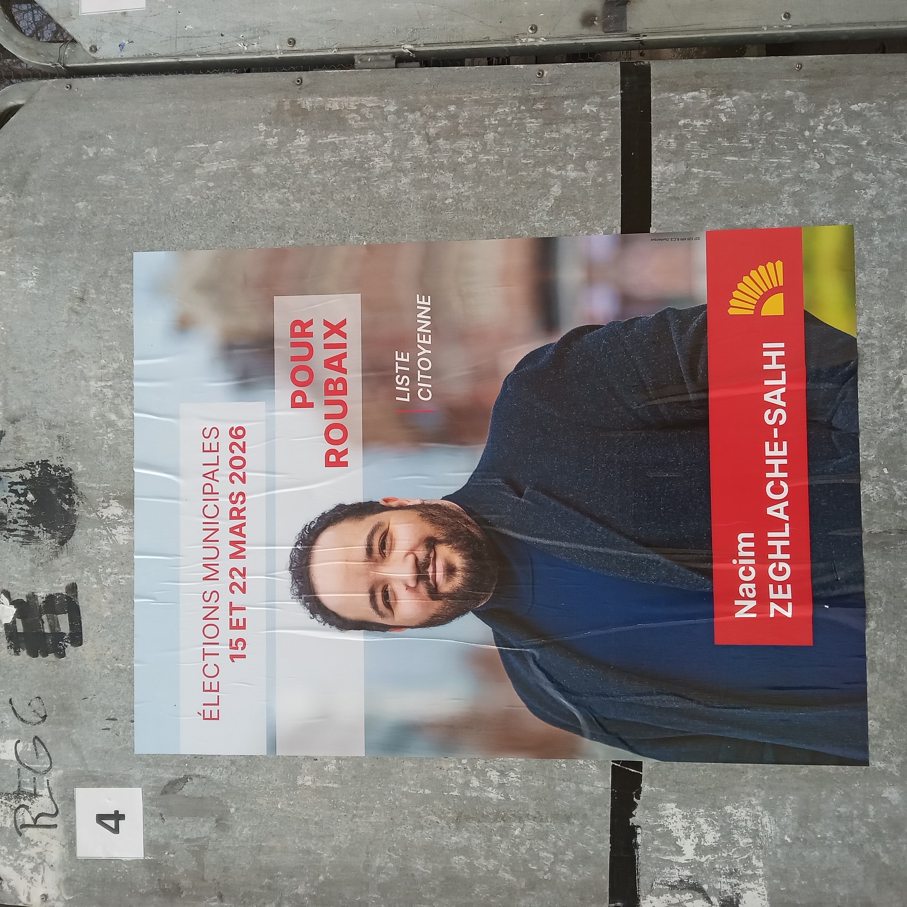 | 13 mars 2026 à 11:09 | Zeghlache2026.jpg (fichier) | 2 Mio | Pylambert | photo: P.Y. Lambert 8 mars 2026 (panneau officiel à gauche de la mairie, côté place) Catégorie:Roubaix 2026 | 1 | |