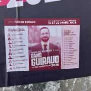 | 13 mars 2026 à 11:05 | Guiraud2026b.jpg (fichier) | 2,27 Mio | Pylambert | photo: P.Y. Lambert 8 mars 2026 (panneau officiel à gauche de la mairie, côté place) Catégorie:Roubaix 2026 | 1 | |